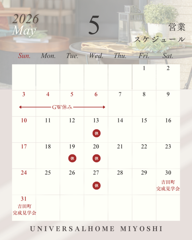 🎏5月営業日のお知らせ🎏ユニバーサルホーム三次店