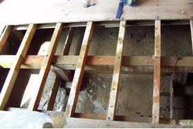 ①フローリング材や畳などの下地を外し、