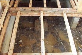 床下への土砂や廃棄物を含んだ雨水=汚水が