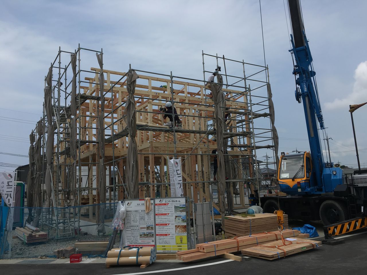 前回に言っていた、「ダブル上棟!!」の写真を