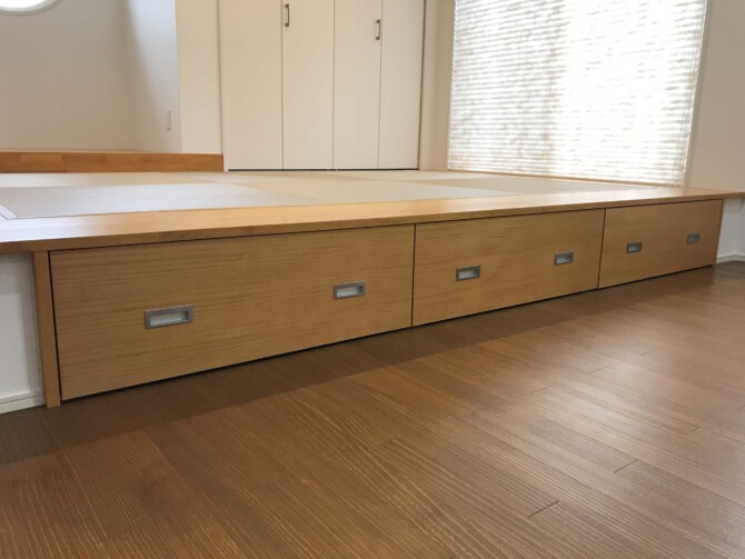 注目‼小上がり部分には、引出しタイプの収納が