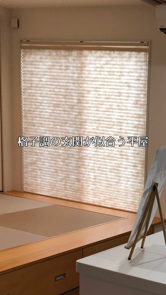 72.格子調の玄関が似合う平屋
