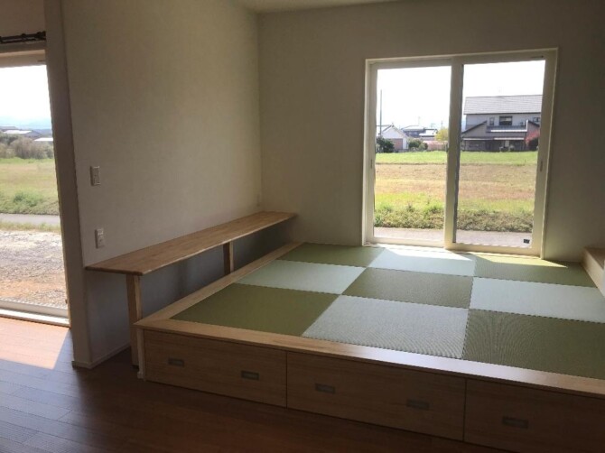 小上がりを利用して収納スペースを作りました。
