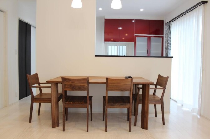 リビングに隣接する和室の畳は、2色のカラーを使いました。