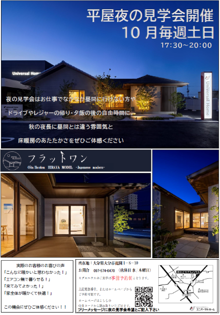 平屋夜の見学会のお知らせ🌙