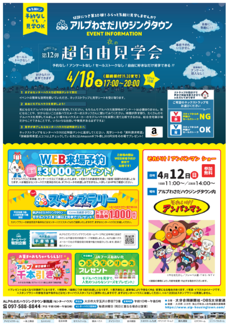 今週末の4/12(日)はALPわさだハウジングタウンにて