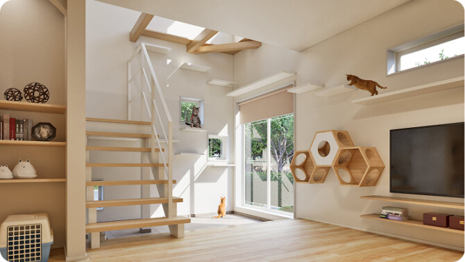 ユニバーサルホームの『ねことひとも、のびのび暮らす』、