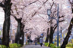 大勢の方がこちらの散歩道を歩いて桜を楽しんでいます。
