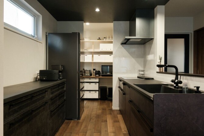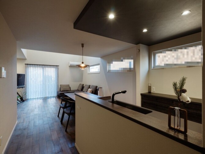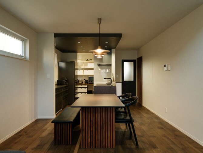 シンプルモダンなダイニングキッチン。