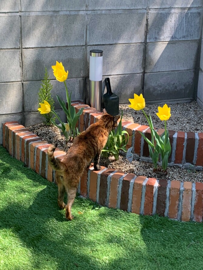 ネコとチューリップ