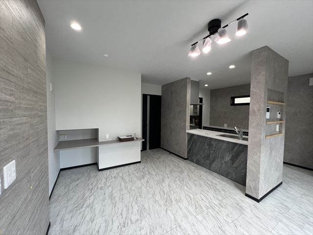【施工事例】大理石をモチーフにした石目調フロアが高級感を演出させる、スタイリッシュなお家