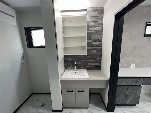 左に見えるのは、洗面化粧台です。