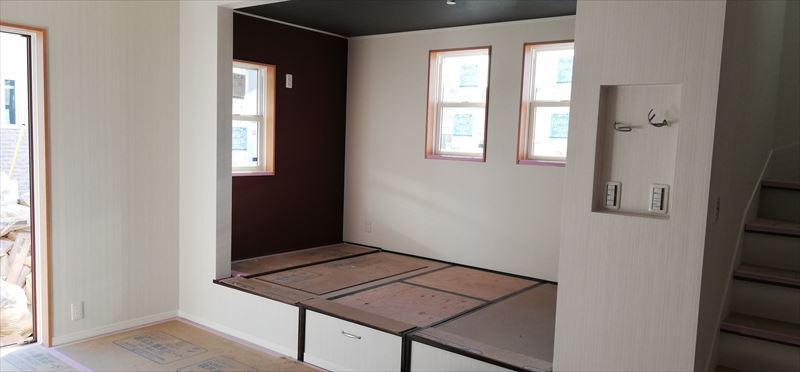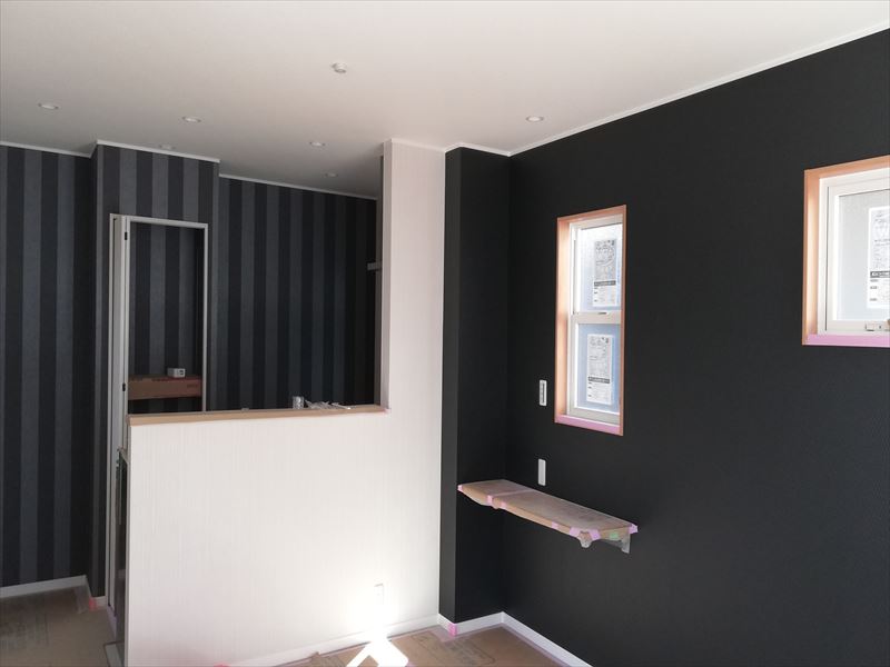 クロス工事が完了しました! 2020.02.02 こんにちは M様邸のクロス工事が完了しました。 キッチン ブラック×グレーのクロスがアクセント 畳コーナー 主寝室は木目調クロスで落ち着いた空間に。 同じようなクロスをモデルハウスの柱にも使ってます。 木目調なクロスとても良いですよね~