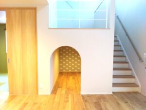 壁の向こうは玄関に続くアトリエコーナーです⇑