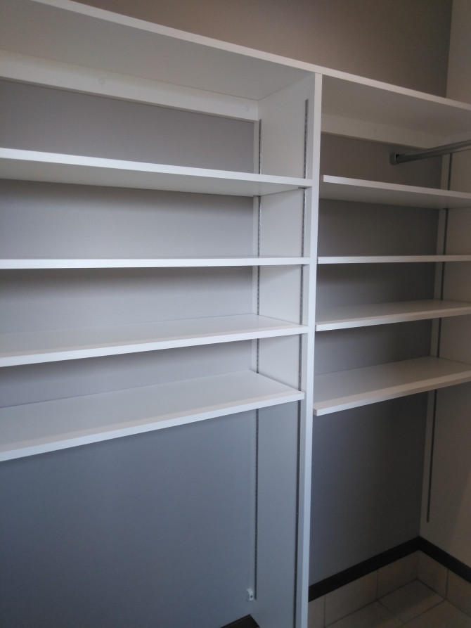 壁3面に枕棚とステンレスパイプが