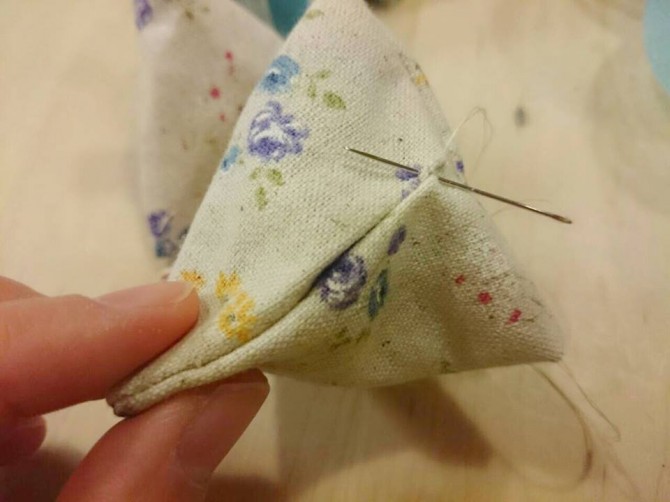 ラベンダーなどを摘めて、閉じ口を縫って出来上がりなので