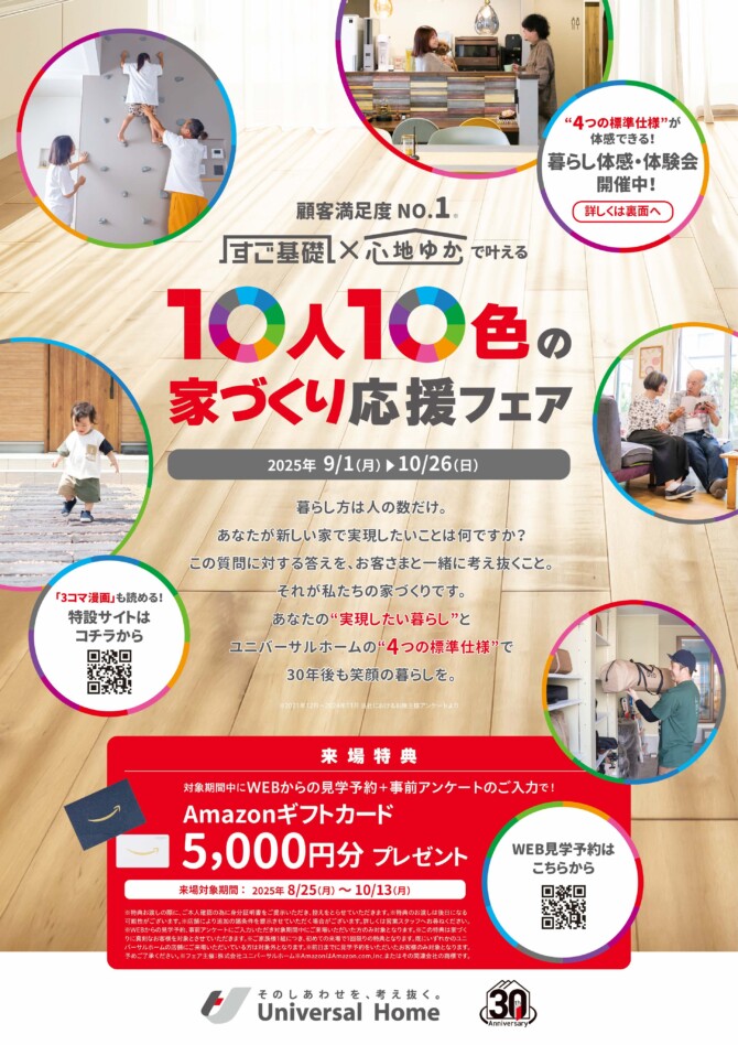 その想いを込めて、この度「10人10色の家づくり応援フェア」を開催します。