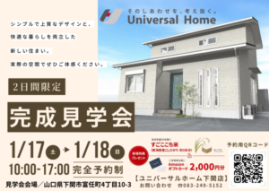 2026年1月17日(土)・1月18日(日)の2日間限定にて完成見学会を開催致します!