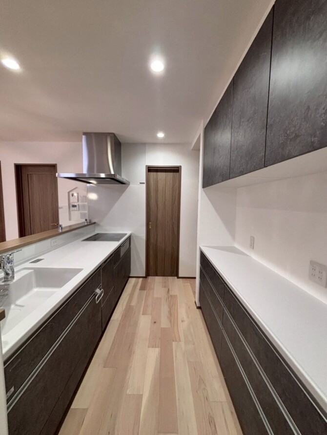 内部建具と設備はダーク系でまとめています。