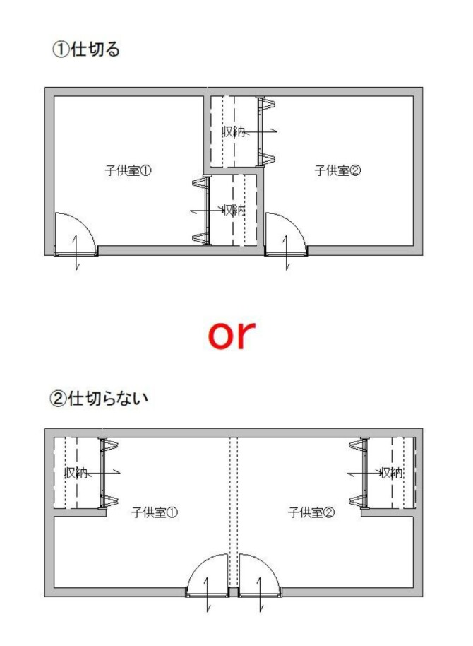 みなさんは、①と②のどちらの子供部屋がお好みですか?