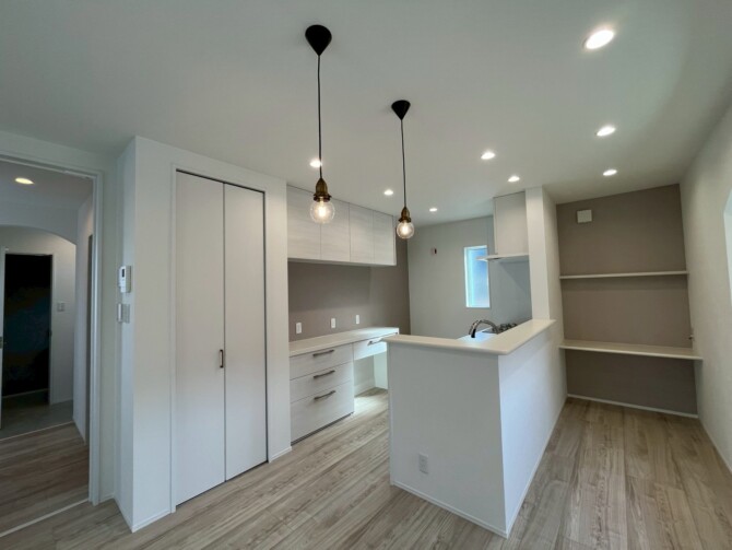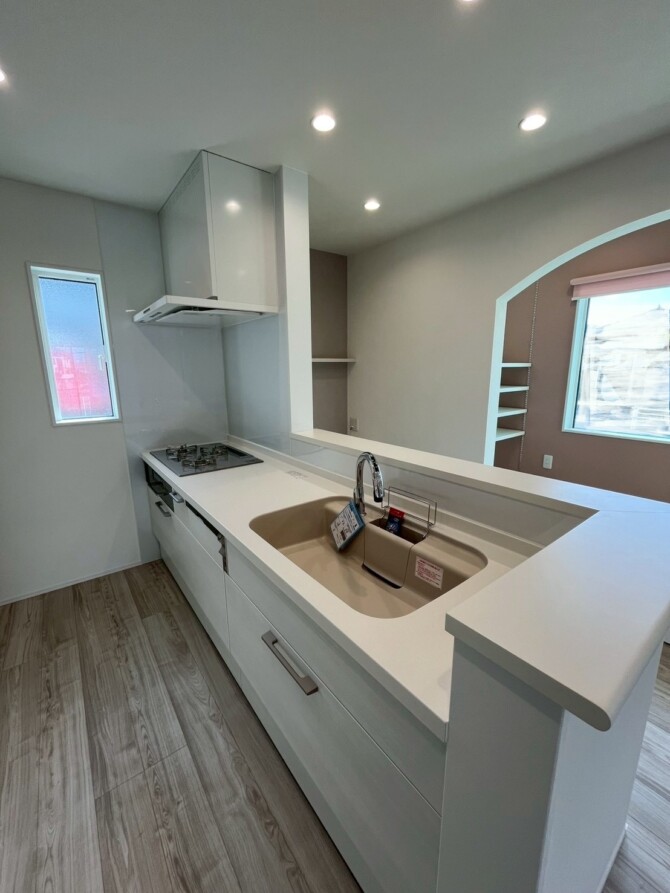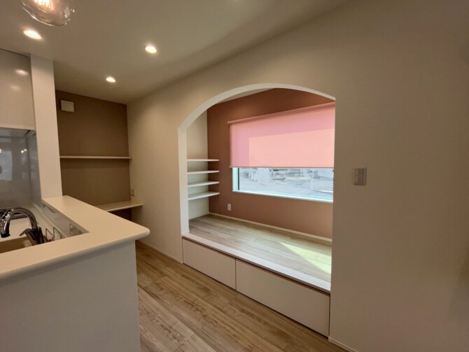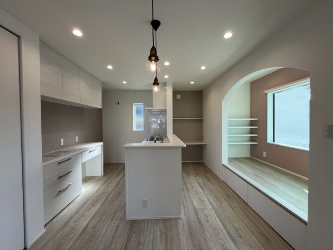 ヌックのある家 2026.01.10 かわいらしい外観♪ 広々シューズクローク 家に帰るとすぐ手を洗える動線 キッチンからもお部屋全体が見渡せる広々LDK 家事スペースや書斎としても使えるカウンター のんびり過ごせるおこもり空間ヌック 便利な収納スペースも✨ ベージュカラーがアクセントのシンク かわいい照明もポイントです💡 寝室にはカウンタースペースと充実のウォークインクローゼット