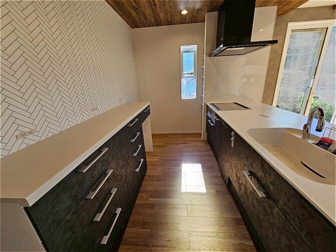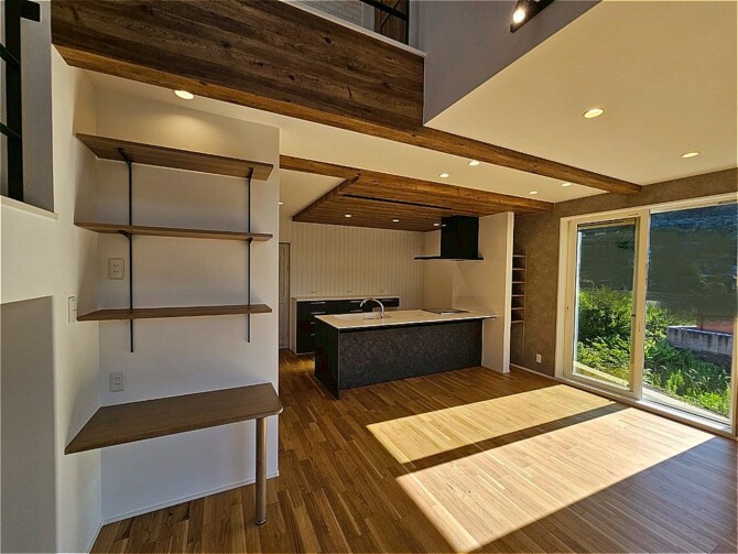 スキップフロアのあるお家 2026.03.21 大きな吹き抜けで開放感のあるリビング 黒×木目のナチュラルでカッコいい内観です キッチンの下がり天井がおしゃれ スキップフロア下は畳のくつろぎ空間 たくさん収納できるシューズインクローク ドアやクロスのカラーでそれぞれ違う印象のお部屋に☆彡