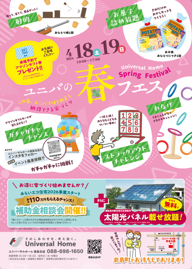 この週末は、ユニバサールホーム徳島北店へお気軽に
