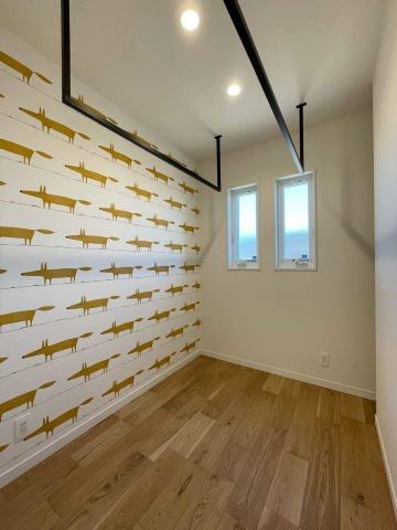 ランドリールームは遊び心のあるクロス♪(サンゲツFE76734)