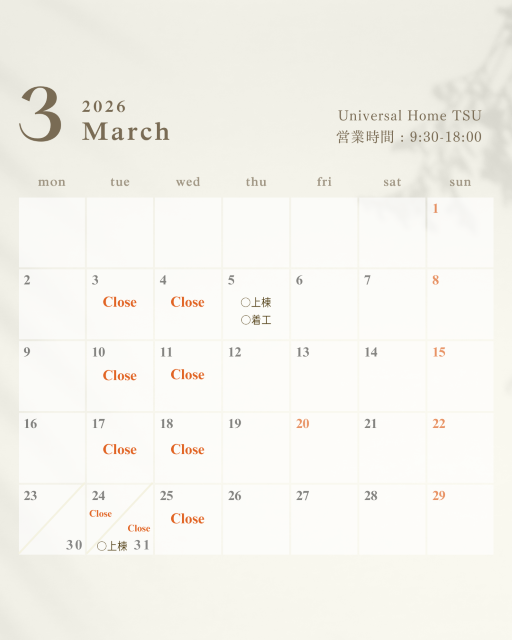 ☆ユニバーサルホーム津店予定表