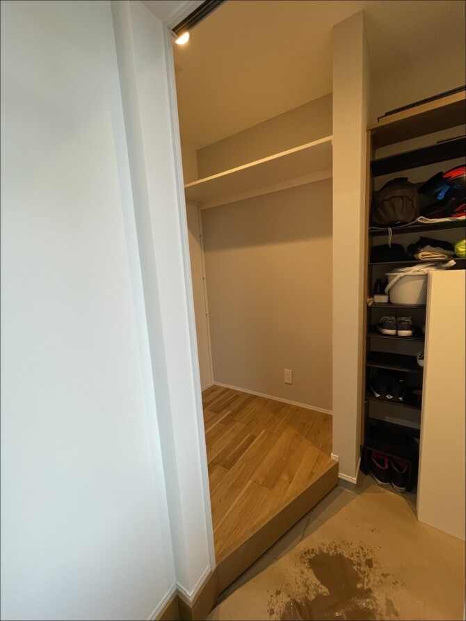 これにより、靴を脱いで使う清潔な収納空間となり、