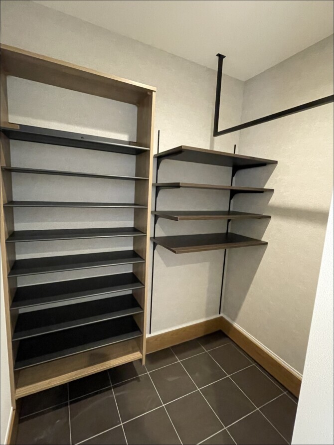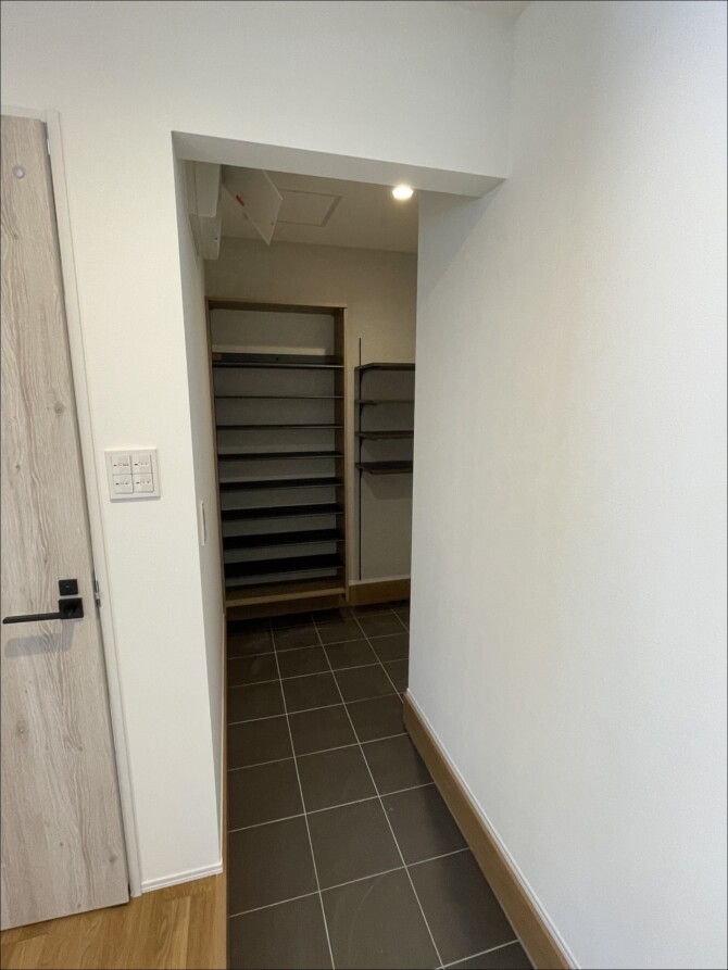 玄関・広々シューズクローゼット。何をどう置くのかをしっかり決め、無駄がありません。