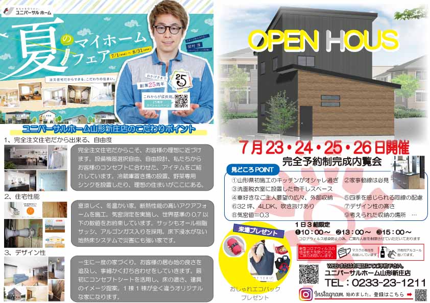 さて、今回はユニバーサルホーム山形新庄店オリジナルイベントと完成見学会のチラシが完成いたしましたのでUPいたします。