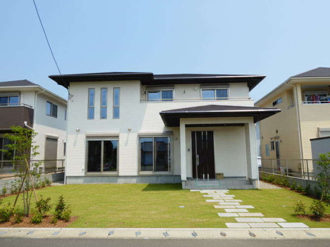 ホワイト系の外壁色を組み合わせた外観です。