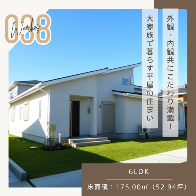 施工事例38 「外観・内観共にこだわり満載!! 大家族で暮らす平屋の住まい」