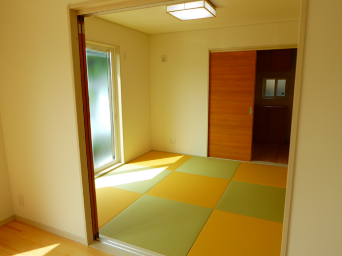 ベージュとグリーンの琉球畳を使い、