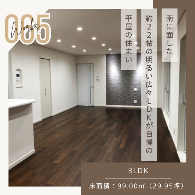 施工事例65 『南に面した約22帖の明るい広々LDKが自慢の平屋の住まい』