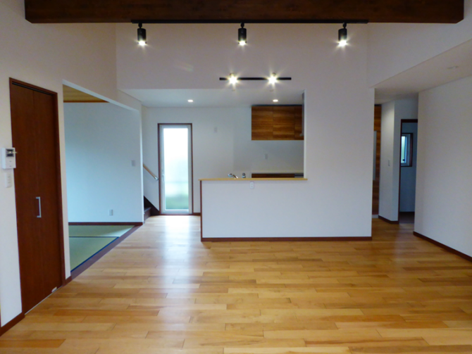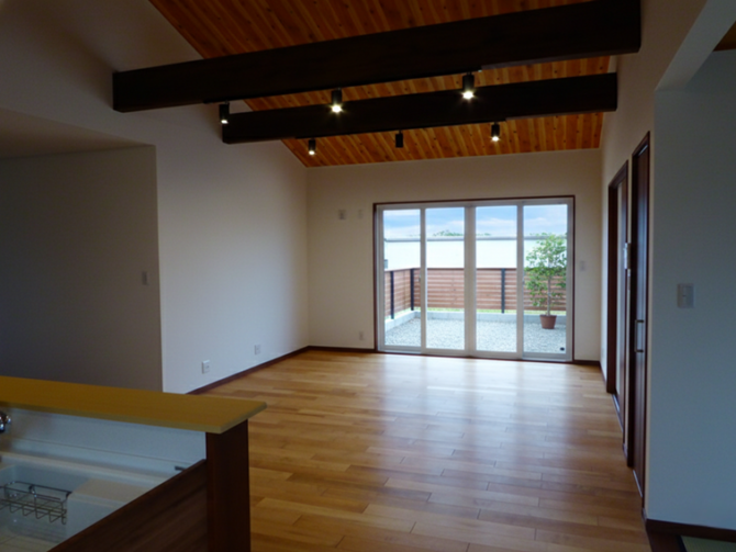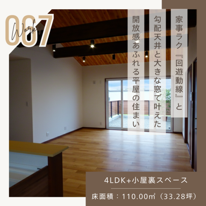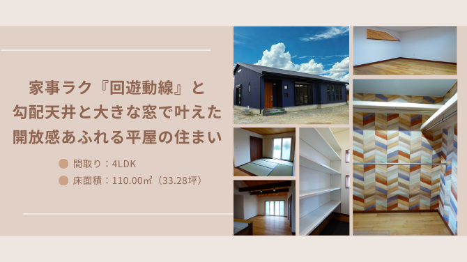 施工事例67 「家事ラク『回遊動線』と勾配天井と大きな窓で叶えた開放感あふれる平屋の住まい」