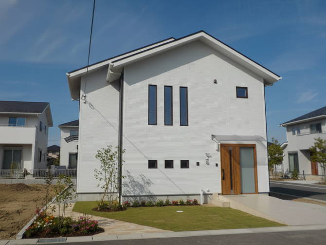 シャープな切妻屋根がモダンな印象を与えます。