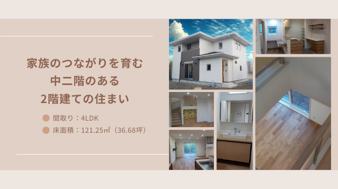 施工事例69 「家族のつながりを育む中二階がある2階建ての住まい」