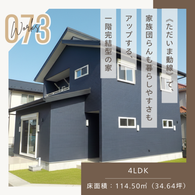 施工事例73 「《ただいま動線》で、家族団らんも暮らしやすさもアップする、一階完結型の家」