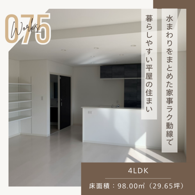 施工事例75 「水まわりをまとめた家事ラク動線で暮らしやすい平屋の住まい」
