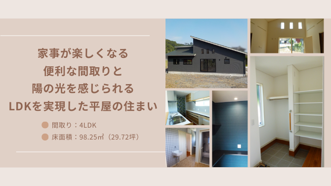 施工事例76 「家事が楽しくなる便利な間取りと陽の光を感じられるLDKを実現した平屋の住まい」