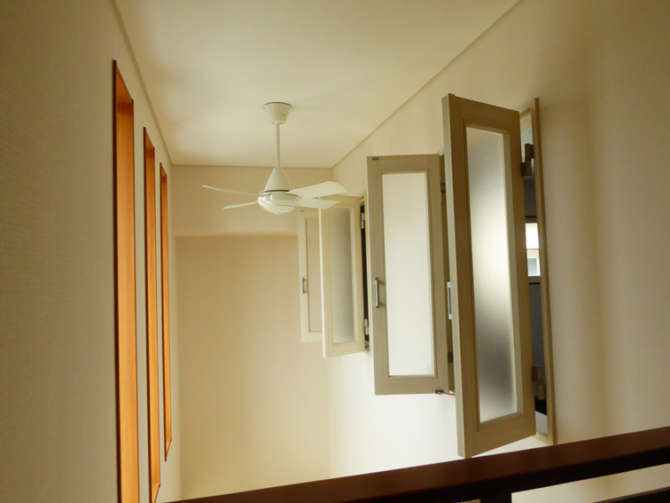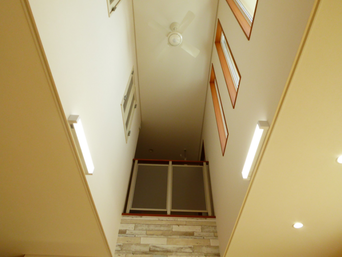 リビング上部に設けた開放感あふれる吹き抜けが、