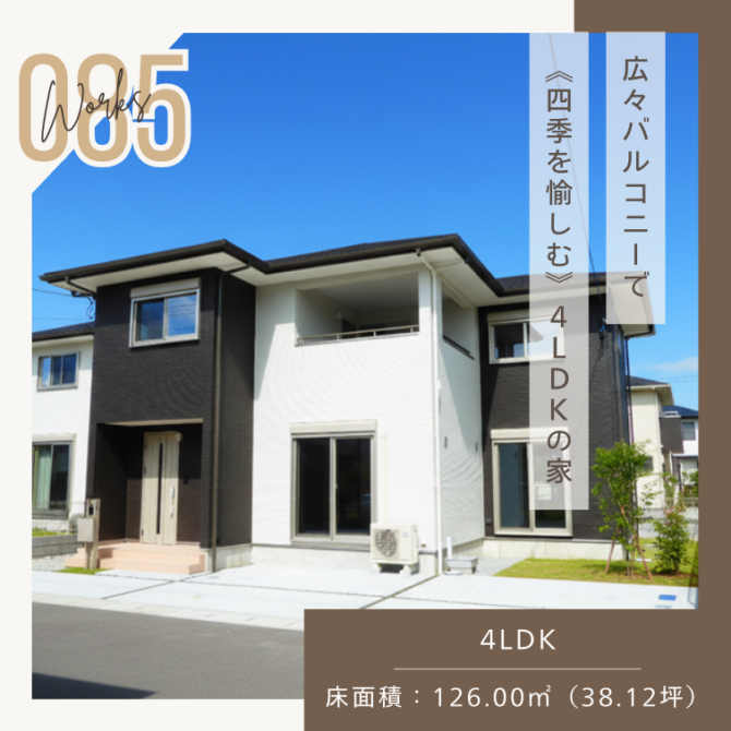 施工事例85 「広々バルコニーで《四季を愉しむ》4LDKの家」