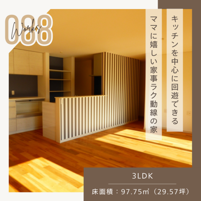 施工事例88 「キッチンを中心に回遊できるママに嬉しい家事ラク動線の家」