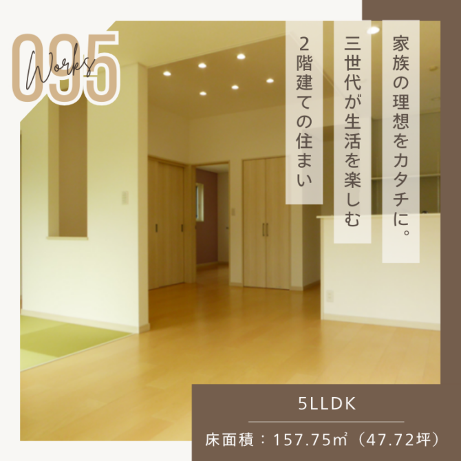 施工事例95 「家族の理想をカタチに。三世代が生活を楽しむ2階建ての住まい」