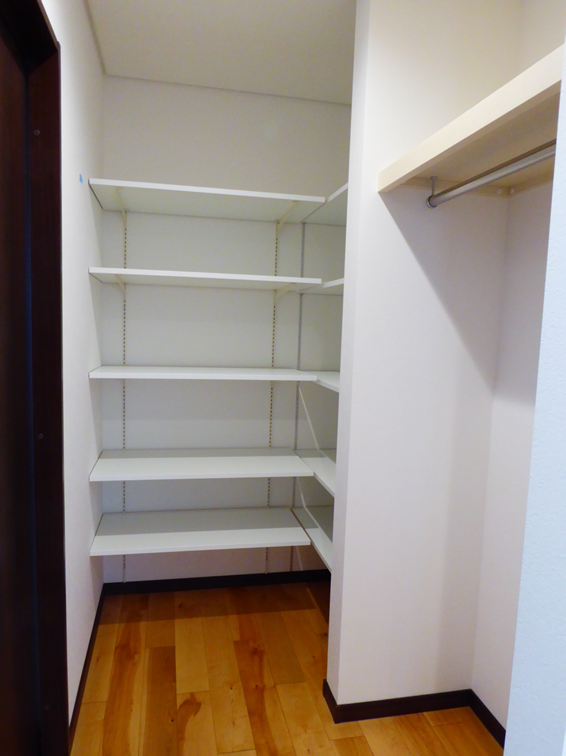 可動棚と枕棚・ハンガーパイプを設置し、