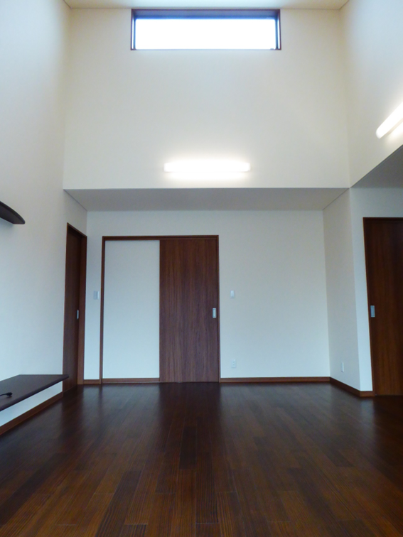 一部を勾配天井にすることで、