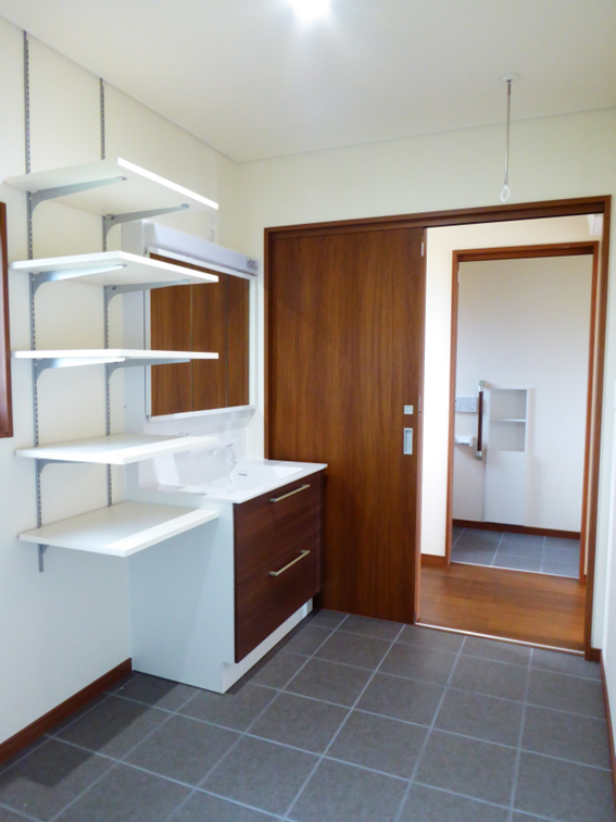 通常より広めに設計した洗面所には、
