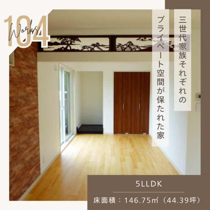 施工事例104 「三世代家族それぞれのプライベート空間が保たれた家」